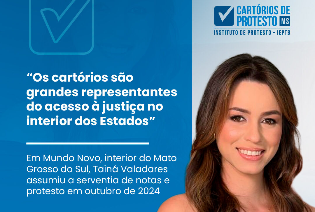 A tabeliã Tainá Ferreira Valadares é delegatária do Tabelionato de Notas e Protestos de Mundo Novo, município localizado no extremo sul de Mato Grosso do Sul, na tríplice divisa entre o estado, o Paraná e o Paraguai.